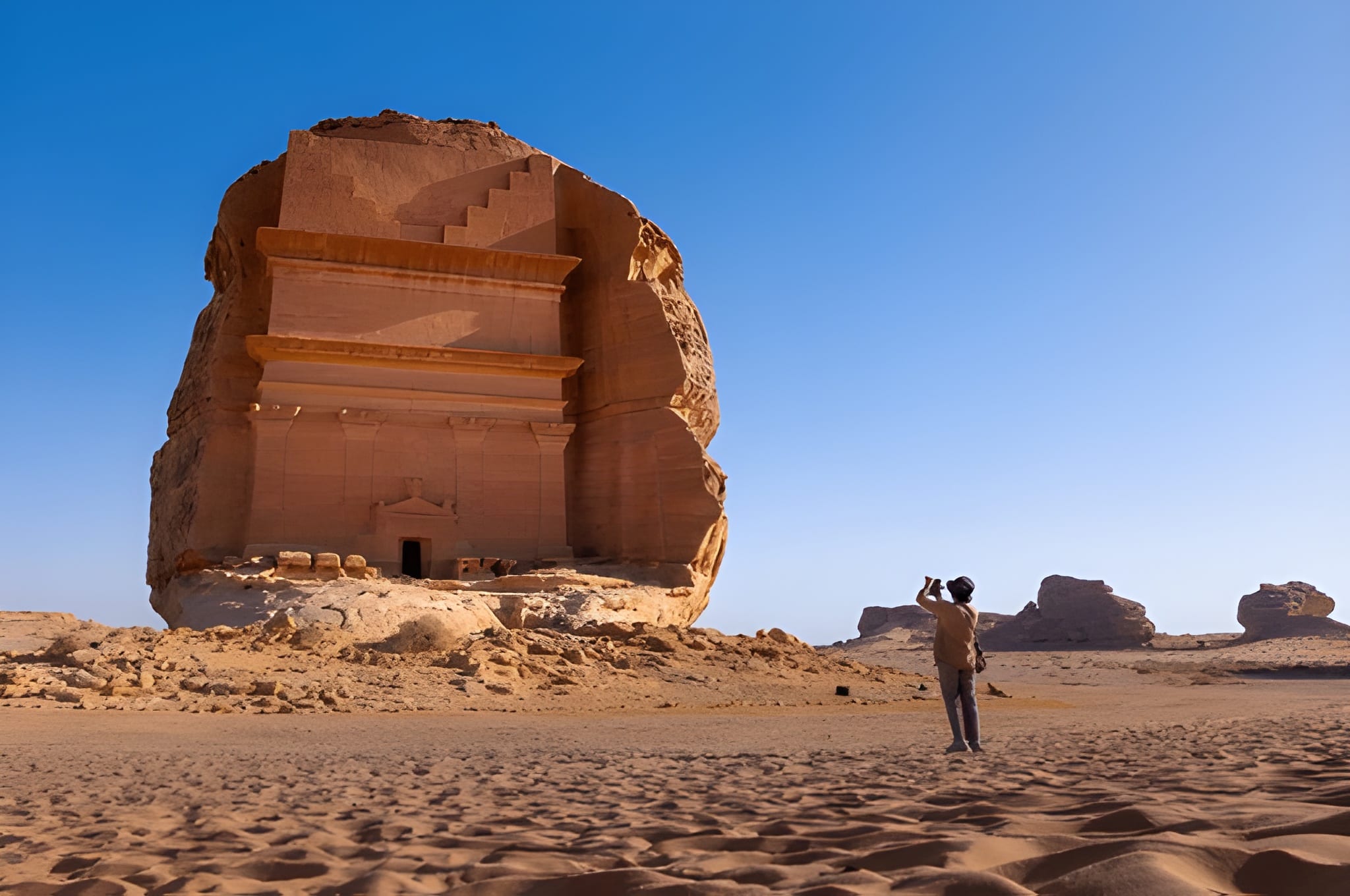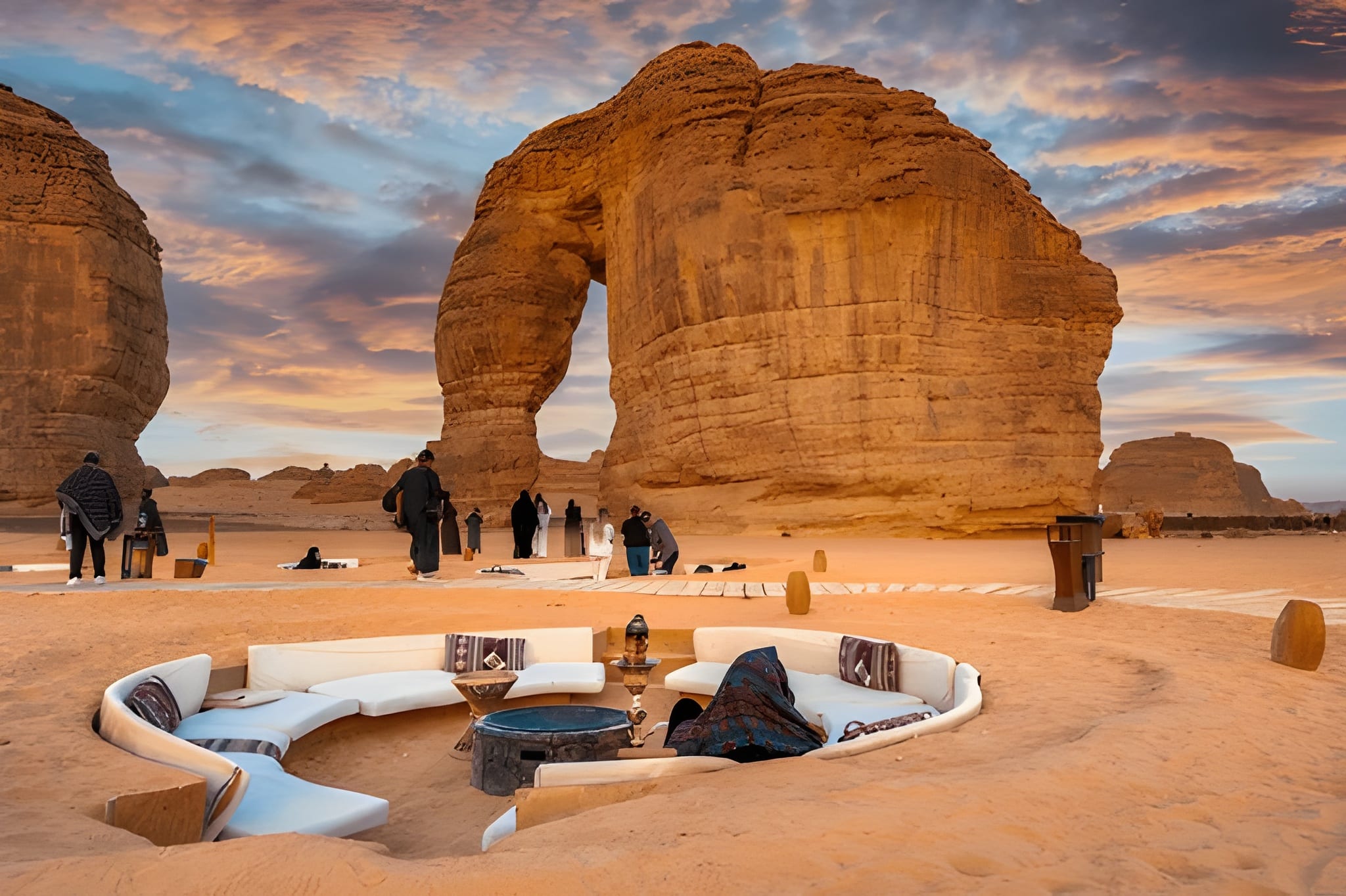 Enjoy a relaxed morning surrounded by desert silence and golden cliffs. This day is free to explore AlUla at your own pace — perhaps visit the UNESCO World Heritage site of Hegra, admire the rock formations of Elephant Rock, or wander through the atmospheric Old Town.
