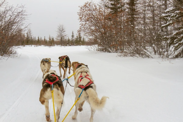 In the afternoon, enjoy an authentic dog mushing adventure across the Churchill terrain. The experience includes an approximately 1–2 mile ride, either on a traditional sled (weather permitting) or a wheeled cart when there is no snow—both equally thrilling as the energetic dogs take the lead.