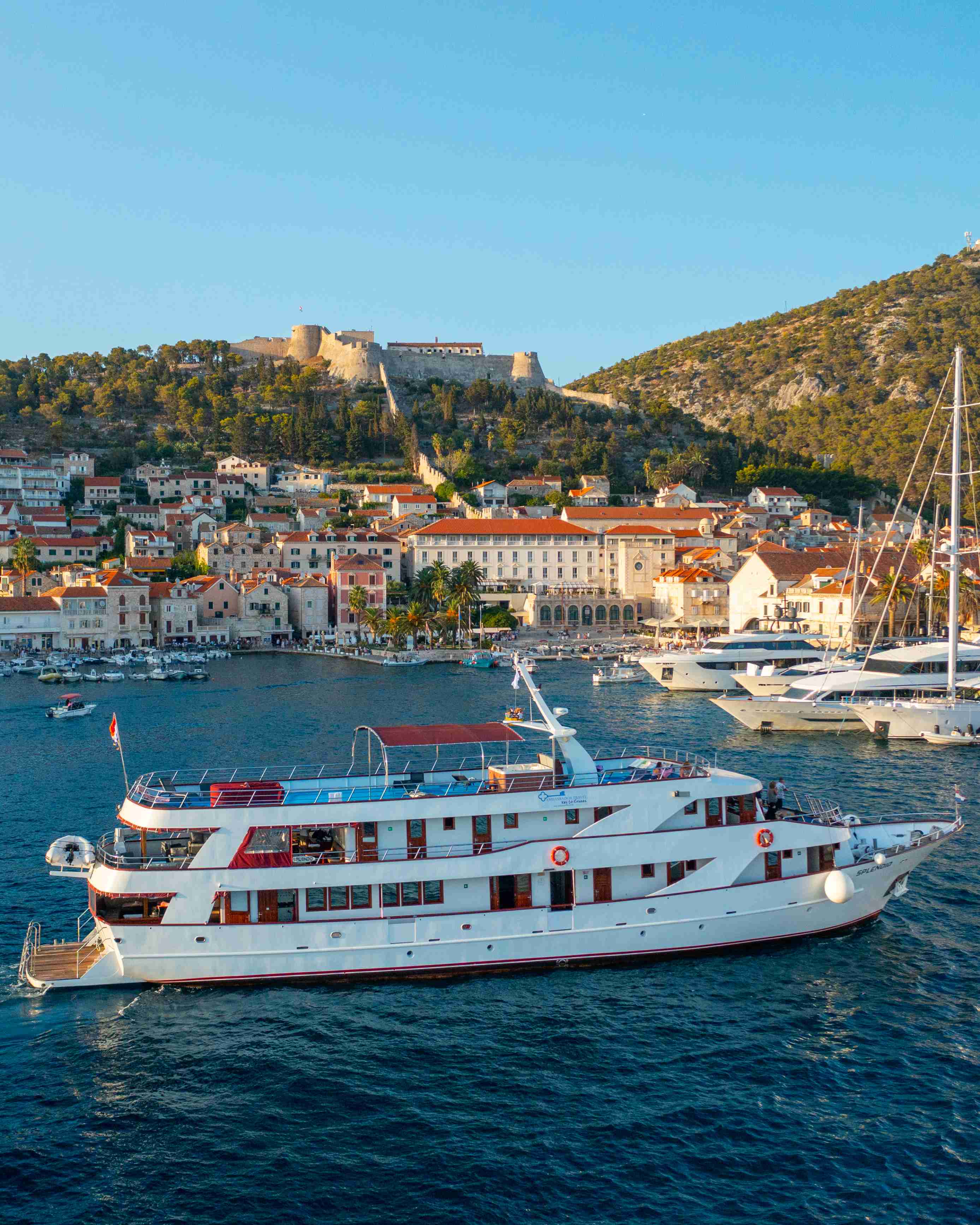 Breakfast onboard before continuing your cruise through stunning Adriatic channels, hidden coves, and scenic bays towards glamorous Hvar Island.