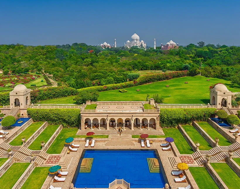 Just 600 metres from the Taj Mahal, The Oberoi Amarvilas captures the romance and grandeur of Mughal palace architecture. With terraced gardens, reflection pools, and uninterrupted views of the Taj from every room, this luxury retreat is the perfect setting for an unforgettable stay in Agra.