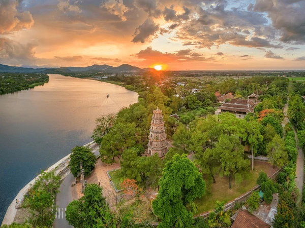 End the day with a boat trip along the Perfume River, passing pagodas and lush landscapes. Stop at the Thien Mu Pagoda, one of Hue’s most iconic sites, to take in panoramic views of the river and city.