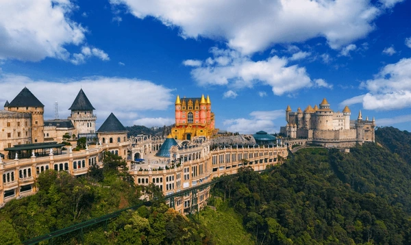 Continue onward to Ba Na Hills, a French-inspired hilltop resort. Ride the iconic cable car, holder of several world records, up to Ba Na Hills Station. Visit the famous Golden Bridge and take in panoramic views of the Truong Son mountain range stretching towards the East Sea. Nearby, visit Linh Ung Pagoda, home to a striking 27-metre-high Buddha statue and an elegant façade reflecting traditional Vietnamese architecture. Stroll through Loc Uyen Garden and Quan Am Pavilion, set amid beautifully landscaped grounds ideal for photos.