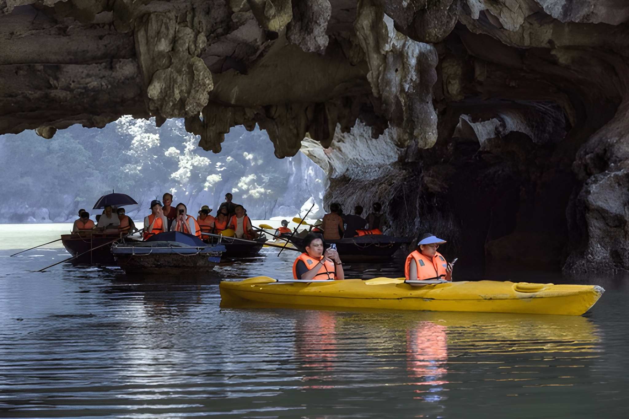 Wake up early to witness a stunning sunrise over the bay. Known locally as the “Eastern Sea,” the sight of dawn breaking over the scattered islets is truly unforgettable. After breakfast, the cruise continues through scenic areas where almost every limestone formation has a name inspired by its shape, including Sail Island, Fisherman’s Head Rock, Butterfly Rock, and Turtle Islet.