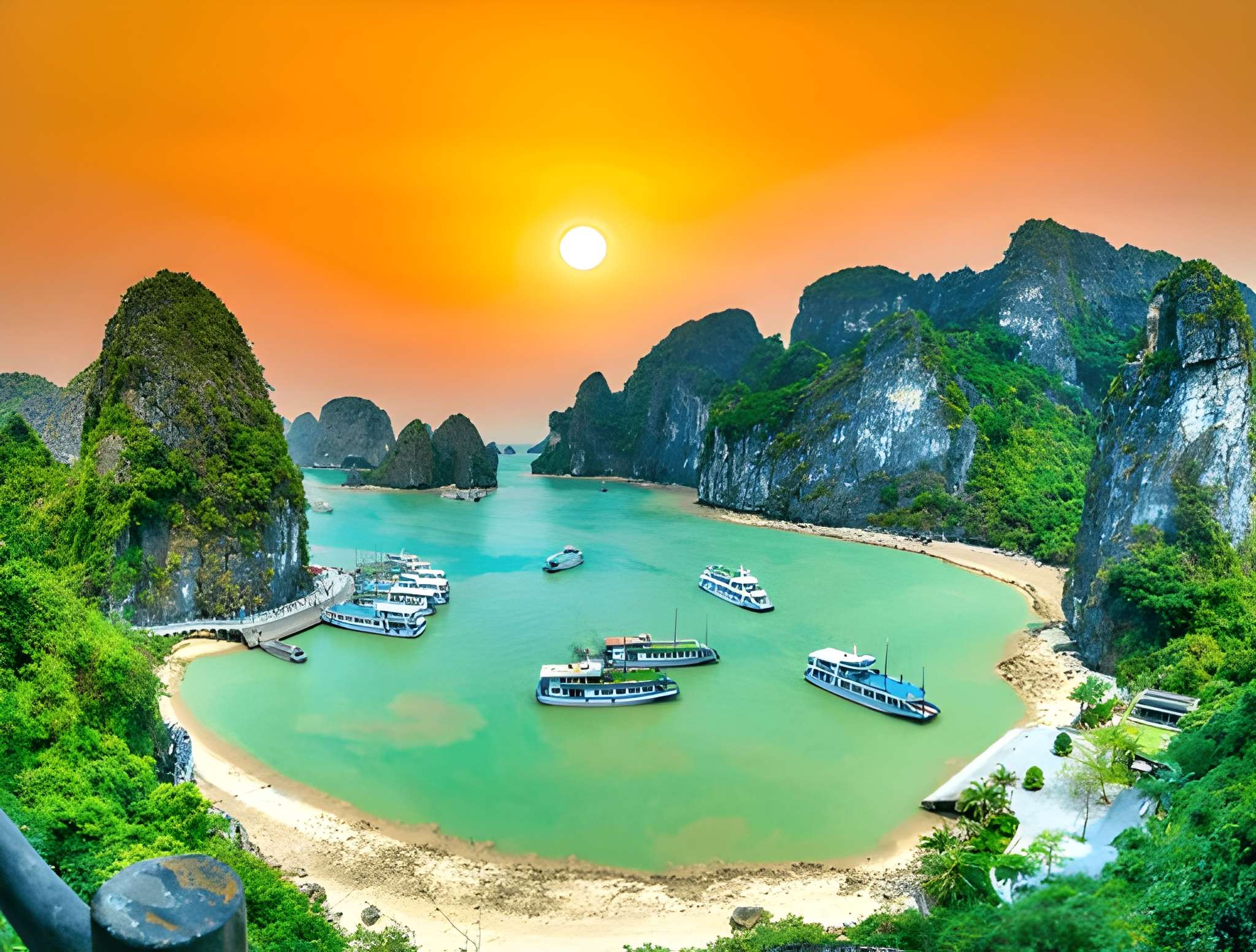 Start your day with breakfast at the hotel. Around 7:30–8:00 a.m., depart for a scenic three-hour drive east to Halong Bay, the jewel of the Gulf of Tonkin and a UNESCO World Heritage Site.